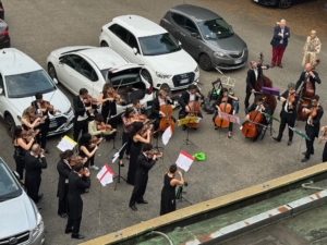 Some musicians of the RAI Orchestra in Turin organized a small outdoor concert in front of the Auditorium Toscanini, right in the car park space. They wanted to attract attention to the Pride Happening on June 7.